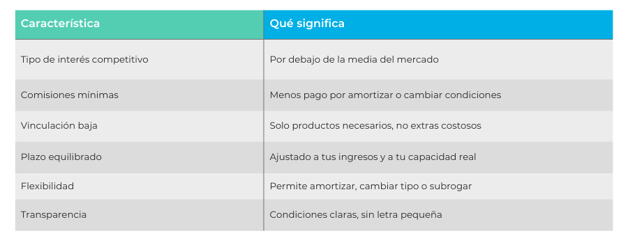 Te dejamos una tabla resumen con todas las características de una buena hipoteca: