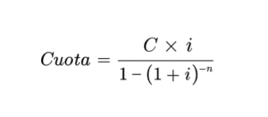 La fórmula general para calcular una cuota hipotecaria es la de amortización francesa, que es el sistema más utilizado en España: