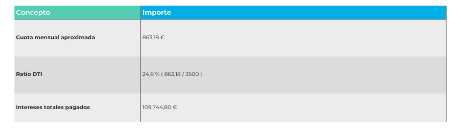 - Cálculo de viabilidad: Nuestra plataforma te ayuda a validar tu ratio DTI de forma inmediata, evitando que simules una hipoteca que es inviable por superar el 35% de endeudamiento.