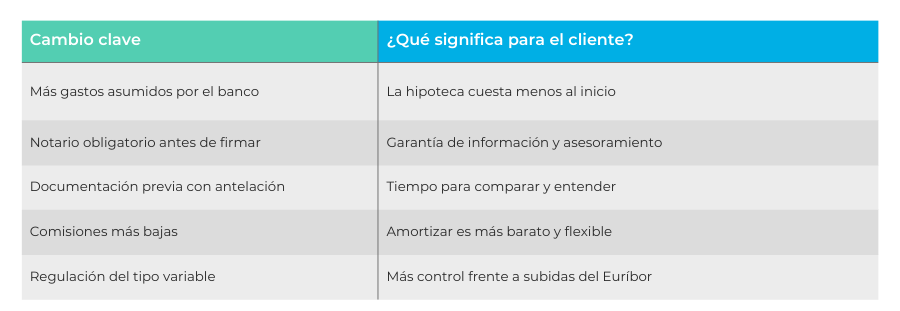 Como ves, la Ley Hipotecaria quiere mejorar la relación entre bancos y consumidores para que el cliente pueda tomar una decisión informada y no firmar algo que no entiende.