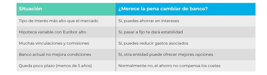 Por tanto, esto son los casos en los que SÍ merece la pena cambiar la hipoteca de banco: